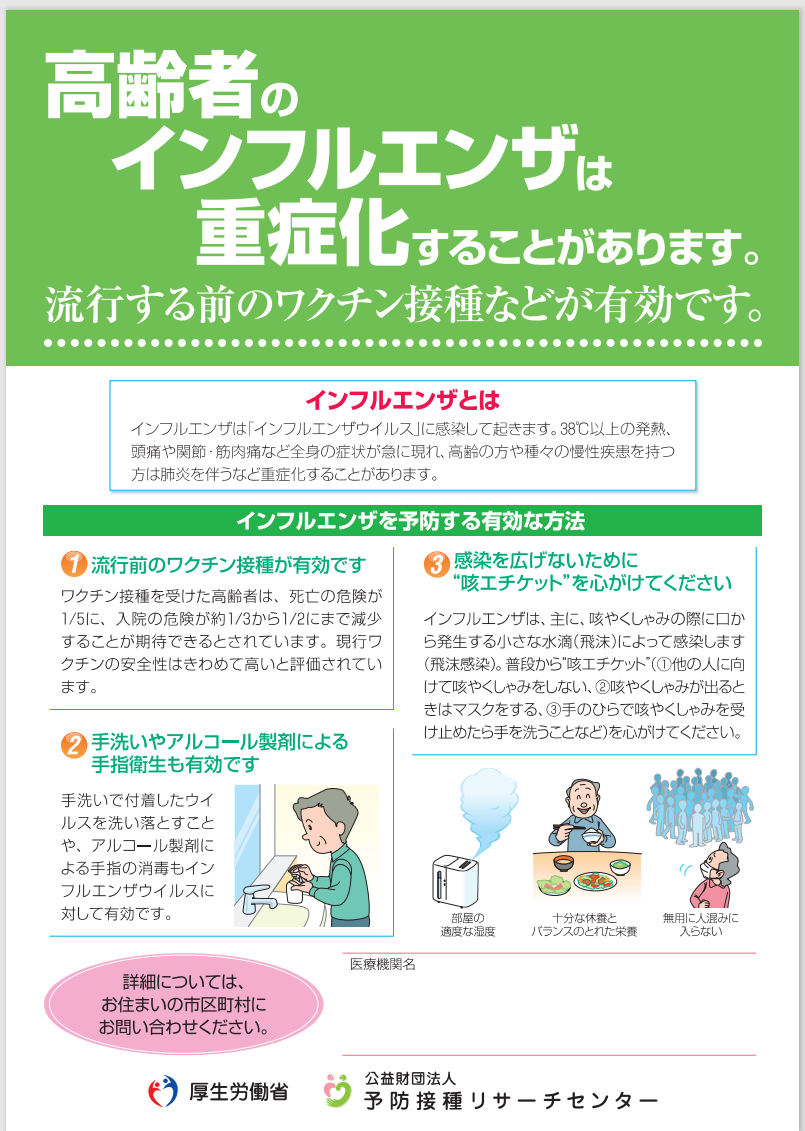 今年はインフルエンザが流行しており、2/3(金)厚生労働省が3年ぶりにインフルエンザ患者数が注意報レベルに達したと発表がありました。
