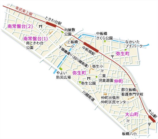 - 中板橋・仲町・大山町・弥生町・南常盤台